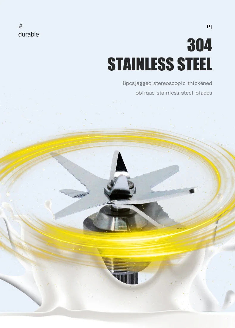 304 Stainless Steel Blades – Razor-sharp and long-lasting for perfect blending every time.